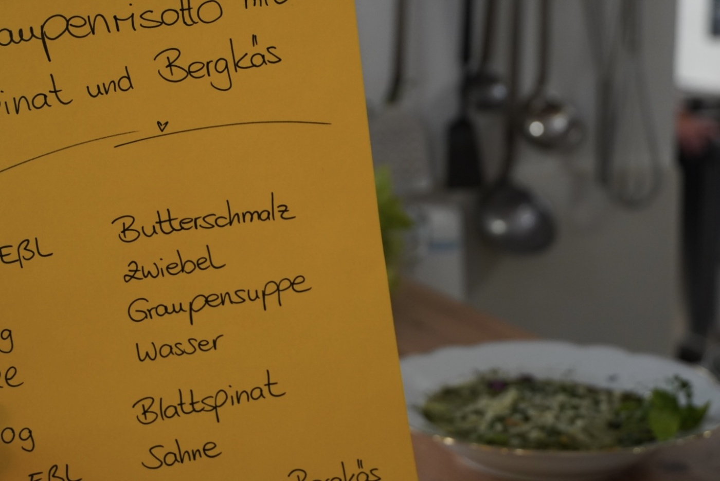 Die Graupen zugeben, kurz mitdünsten und anschließend mit Wasser aufgießen.
