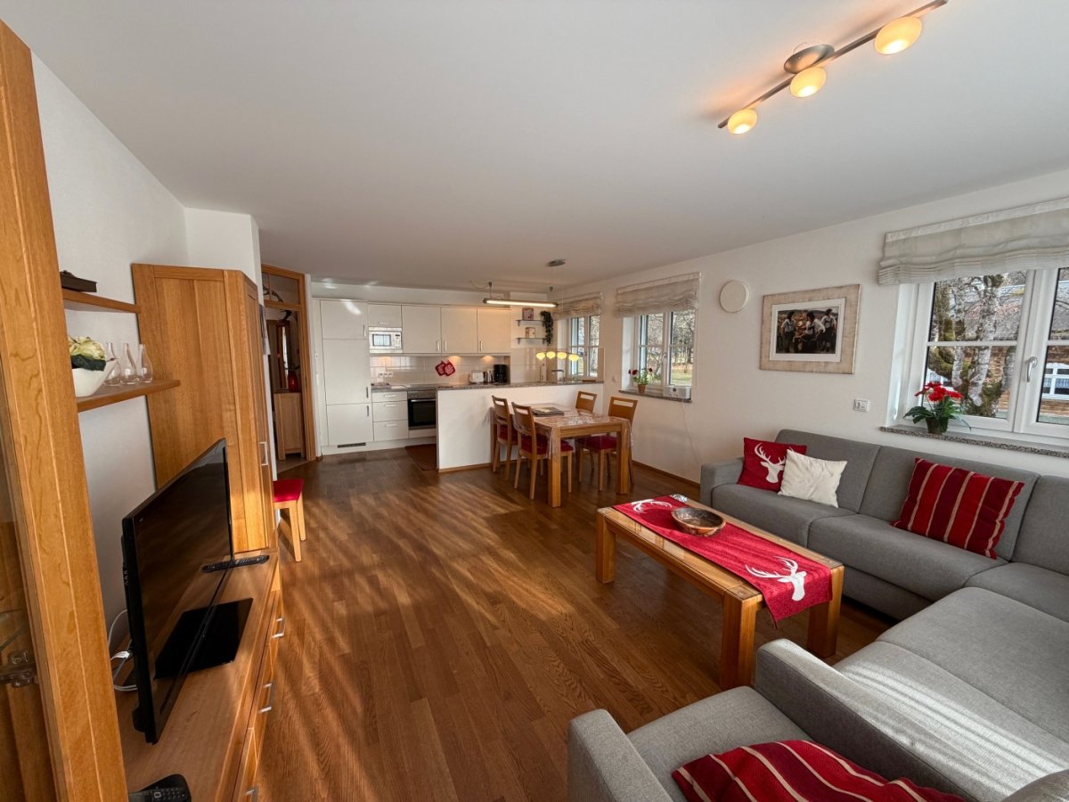 Im Wohnzimmer erwarten Sie Massivholzmöbel, eine gemütliche Polstergruppe sowie ein großzügiger Essbereich. Selbstverständlich sind 2 Flachbildfernseher mit Kabelanschluss, DVD/Blu-Ray, Digitalradio Telefon vorhanden.