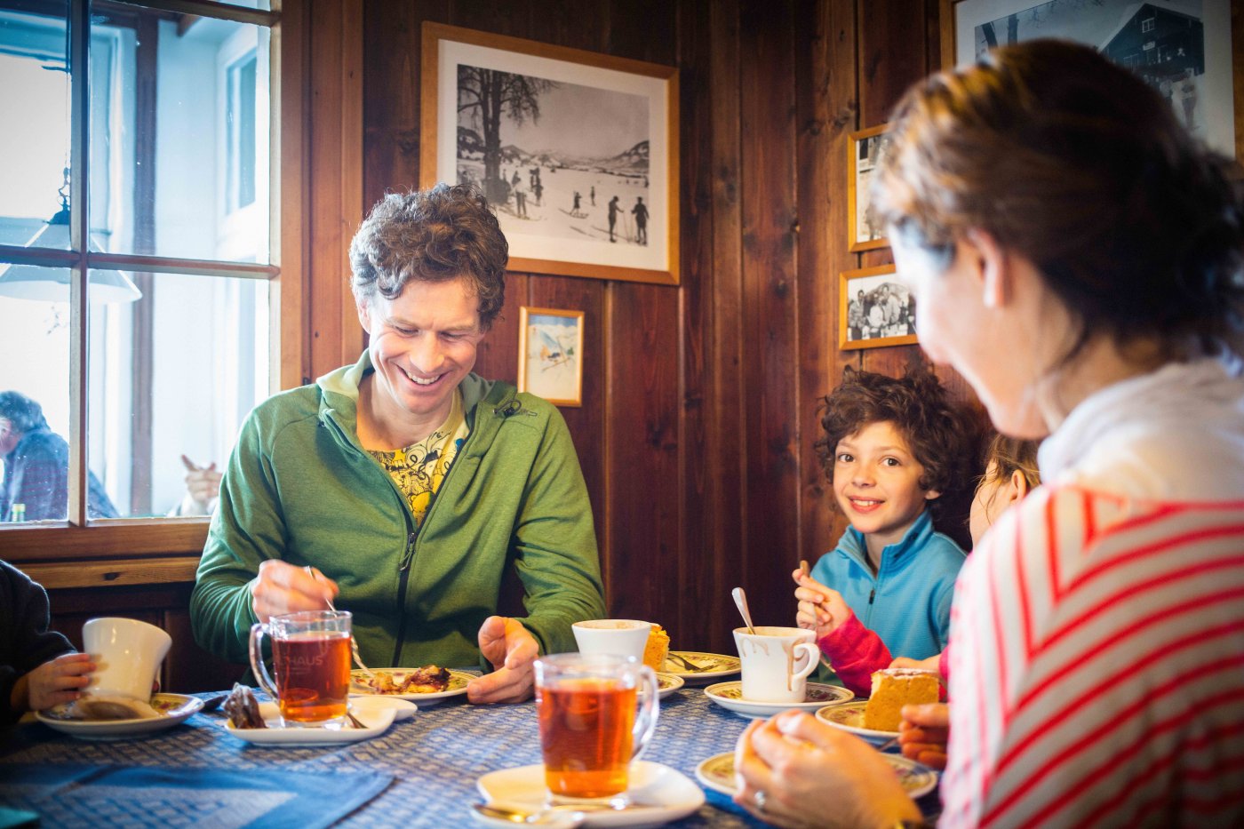 Die Erwachsenen haben so die Möglichkeit, sich den Aufenthalt mit heißen Getränken oder einem Stück Kuchen zu versüßen und das Treiben am Hang von hier zu beobachten.